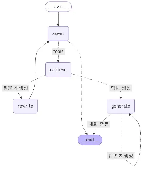 앞서 정의한 노드들을 통해, 최종 graph를 정의합니다.