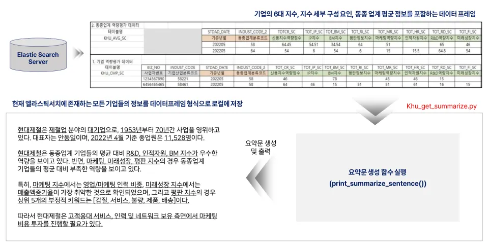 산출된 기업성장지수를 규칙 기반 알고리즘(Rule-Based Algorithm)에 적용시켜, 기업 정보 요약문을 제공