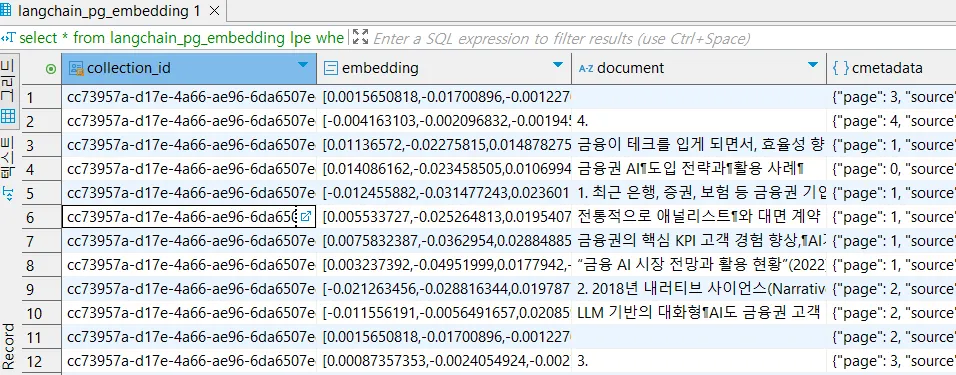 main 코드에서 사용한 PGVector 데이터베이스를 사용하였습니다.