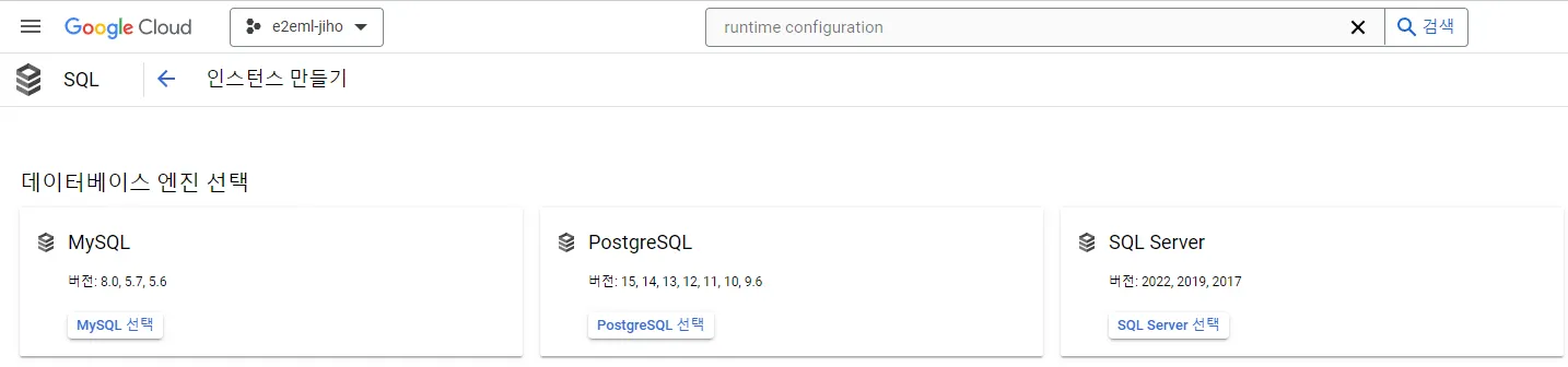 Cloud SQL 버전 선택의 경우, Enterprise의 샌드박스 버전을 사용했습니다. 더 많은 기능 또는 고가용성이 필요하시다면 다른 버전을 선택할 수 있습니다.