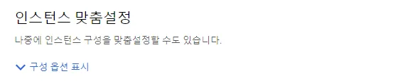 인스턴스 맞춤설정에서 구성 옵션 표시를 클릭하세요.