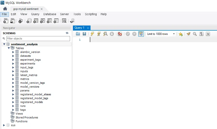 이때, Backend store로서 GCP SQL을 지정했습니다. 따라서, GCP에 있는 데이터베이스에 관련 데이터가 자동으로 저장됩니다.